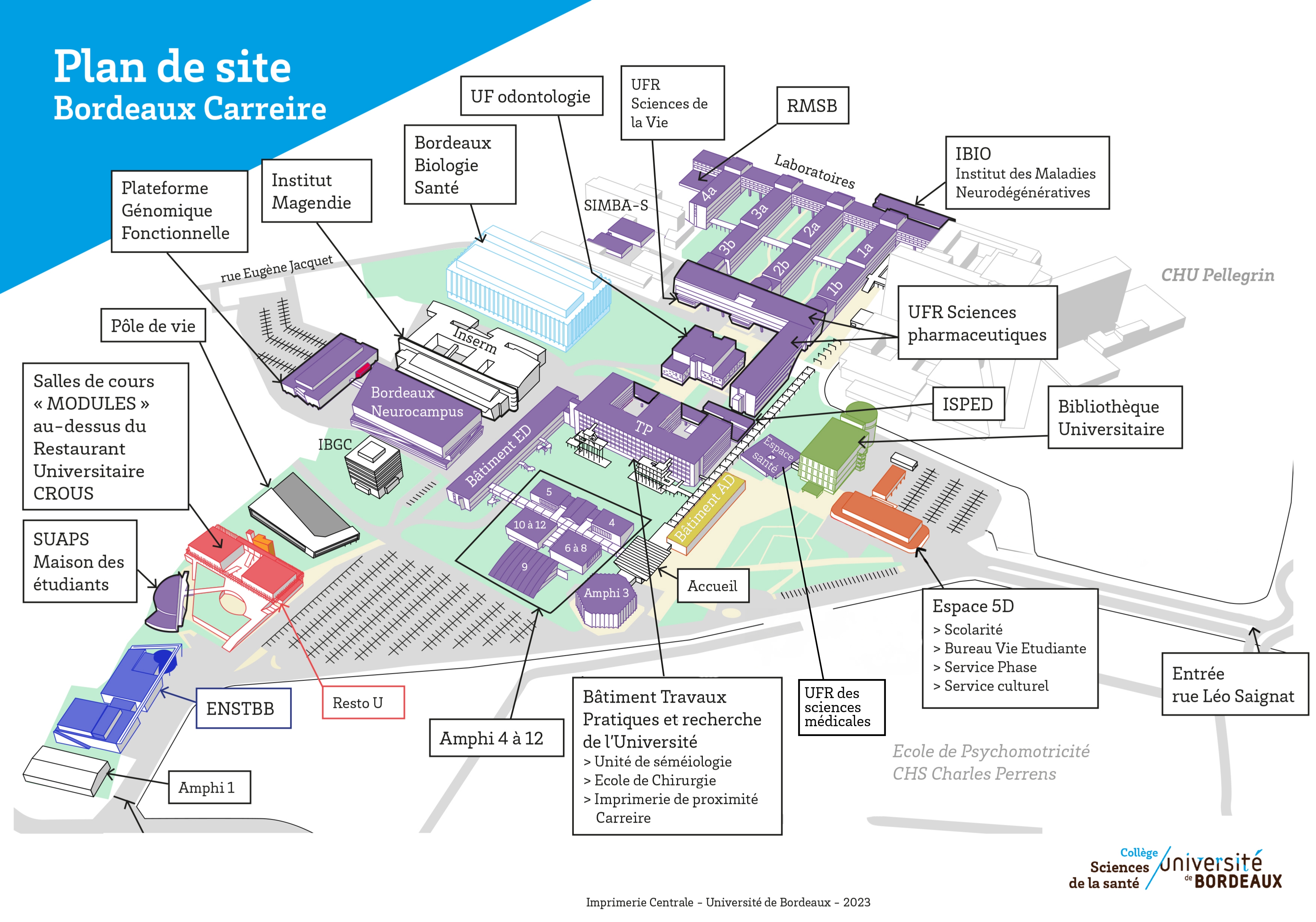 - Vcub : à l'entrée du campus Carreire (146 rue Léo Saignant, 33076 Bordeaux), station Bordeaux II - accès urgences maternité